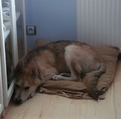 Szkoda tylko, że moja nowa pani szykując mi posłanie zapomniała, jaki jestem duży...