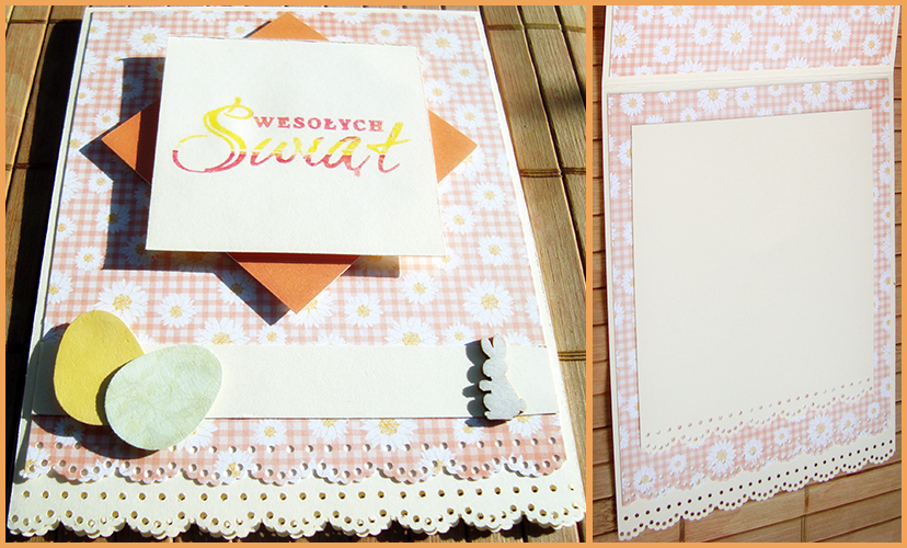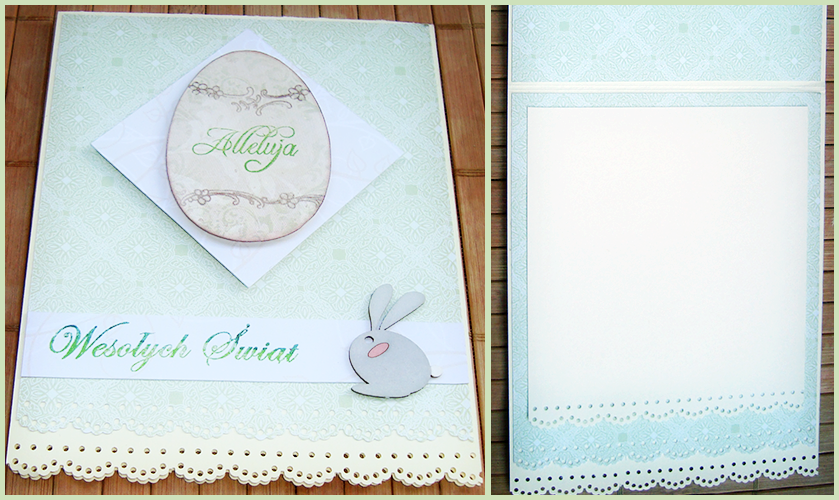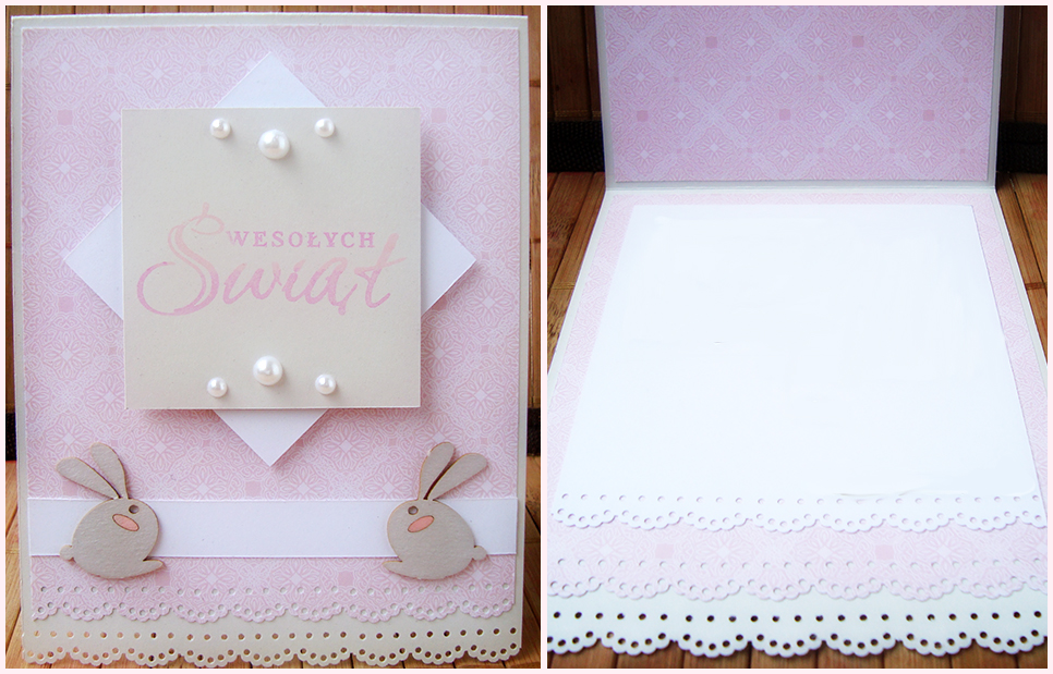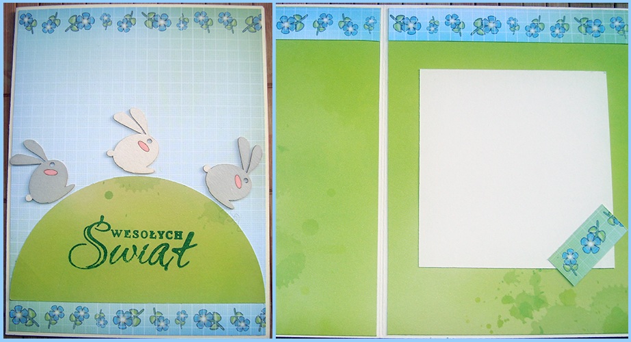 Mam wrażenie, że z każdym rokiem coraz więcej problemów mam z wymyślaniem kartek. Nad tegorocznymi myślałam ze dwa tygodnie i na nic nie mogłam wpaść. Dopiero w ostatnie dni przed Świętami pomyślałam, że w sumie nie muszę wymyślać nie wiadomo czego, lepiej, żeby własnoręcznie zrobić nawet proste kartki, niż wysłać kupione, albo nie wysyłać wcale. Z pomocą przyszły mi słodkie tekturowe zajączki, które kupiłam jeszcze w zeszłym roku. Forma kartek też najprostrza z możliwych i właściwie wszystkie kartki są robione na tym samym schemacie, ale wiecie co? Efekt bardzo mi się spodobał!