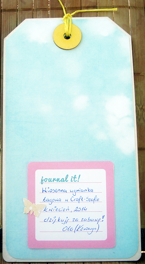 Jakiś czas temu zapisałam się w Craft Szafie na wymiankę tagową, pod hasłem wiosna. Tag do 18 kwietnia miał się znaleźć u wymiankowej pary, niestety, moja nie odpisała mi na maila z prośbą o adres, więc nie wiedziałam, dokąd wysłać.