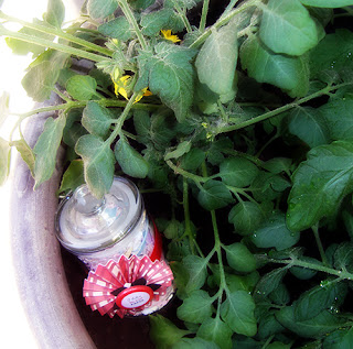 W gościnnej roli moje krzaczki pomidorków koktajlowych, raz wyglądające bardziej biednie, raz mniej.